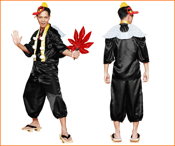 メンズ 天狗黒 てんぐ 妖 妖怪 オニ 怖い 日本 和風 ハロウィン コスプレ コスチューム 衣装 仮装 集団仮装 かわいい