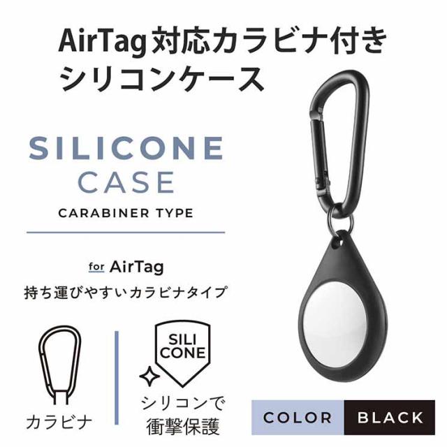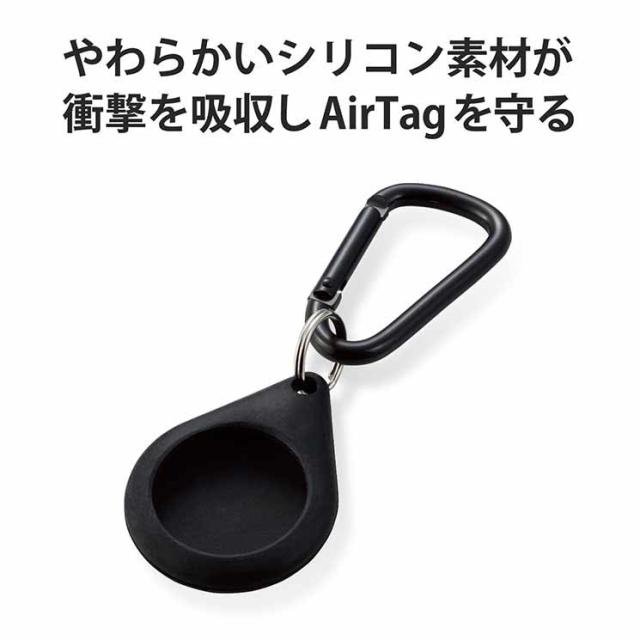 エレコム AirTag用ケース 保護カバー シリコン カラビナ付 アンチダストコート 持ち運び ブラック AT-SCKBK