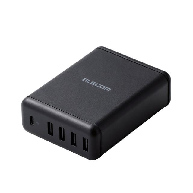 エレコム USB充電器 Type-C搭載 5ポートUSB C×1+USB A×4ポート 最大出力60W Nintendo Switch PS4コントローラー対応 1年保証 PSE認商品 ブラック MPA-ACD02BK