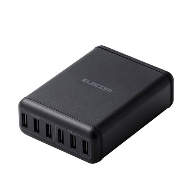 エレコム USB 充電器 6ポート 滑り止めラバー付 出力自動判別 最大出力60W Nintendo Switch PS4コントローラー対応 1年保証 PSE認商品 ブラック黒 MPA-ACD03BK
