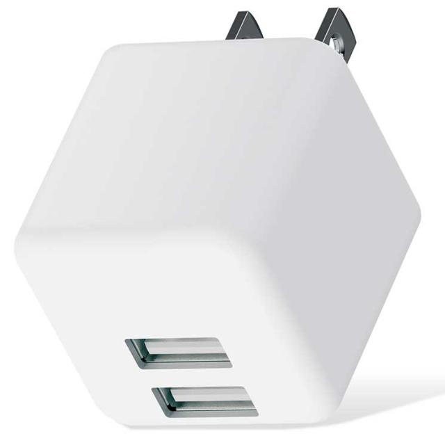 ■家庭用コンセントからスマートフォンやタブレット等を充電、給電できるAC充電器です。■携帯に便利なコンパクト設計のデザインを採用しています。■出力端子が2ポートありますので、スマートフォンなどを2台同時に充電が可能です。■1ポート最大出力12W(5V/2.4A)、合計最大出力12W(5V/2.4A)の高出力タイプです。■接続された機器を自動検知し、最適電流で充電できるおまかせ充電に対応しています。■スマートフォン等に付属もしくは対応する充電用USBケーブルを使用して充電可能です。※本製品に充電用ケーブルは付属していません。■トラッキング現象による火災の防止に役立つ、絶縁キャップ付きのコンセントプラグを採用しています。■対応機種:2つのUSB Type-Aポートから、それぞれ最大12W(5V/2.4A)、合計最大12W(5V/2.4A)までの出力で充電、使用可能な機器とその組み合わせ ■コネクタ形状:USB Type-A メス ×2 ■外形寸法:約 幅34mm×厚み34mm×高さ34mm ※ACプラグ収納時 ■重量:約44g ■カラー:ホワイト
