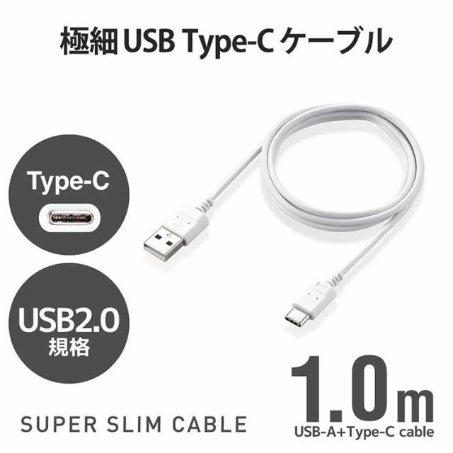 エレコム USB-Cケーブル Type-Cケーブル スリム 極細 A-C 1m スマホ充電ケーブル ホワイト MPA-ACX10WH