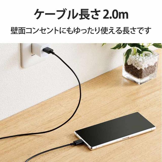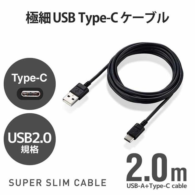 エレコム USB-Cケーブル Type-Cケーブル スリム 極細 A-C 2m スマホ充電ケーブル ブラック MPA-ACX20BK2
