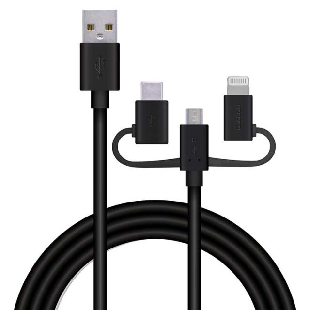 ■USB2.0(micro-B)端子をLightning端子、USB Type-C端子に変換できるアダプタがついた、USB micro-Bケーブルです。■変換アダプタを着脱することで、Lightning端子搭載機器、USB Type-C端子搭載機器、加熱式タバコも含めたUSB micro-B端子搭載機器をパソコンやモバイルバッテリー、ACアダプタと接続して充電/データ通信することができます。※iPadはパソコンからは充電できません。■コネクタをホコリから守るコネクタキャップが付属しています。■コネクタキャップを使用しない際は、ケーブルにクリップしておくことができます。■ゆったり使えるケーブル長1.2mです。■最大15W(5V/3A)の大電流で接続機器の充電が可能です。 ■※本製品はUSB Power Delivery非対応です。■コネクタ形状1:Lightning(オス)-USB micro-B(メス) ■コネクタ形状2:Type-C(オス)-USB micro-B(メス) ■コネクタ形状3:USB micro-B(オス)-USB A(オス) ■長さ:1.2m ※コネクタ含まず ■使用目的・用途:USB A端子を持つパソコン及びAC充電器とLightning端子を搭載したiPhone,iPad,iPod、USB micro-BまたはUSB Type-C端子を搭載したスマートフォン、タブレットを接続し、充電・データ通信が可能
