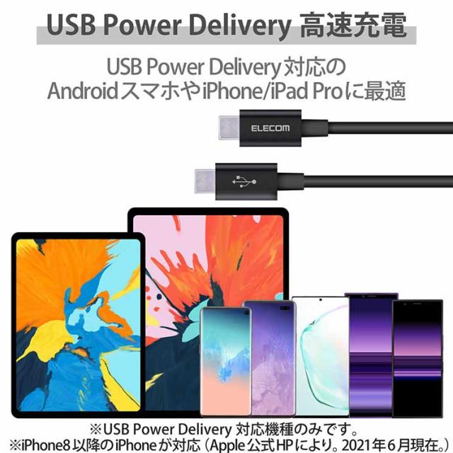 エレコム USBケーブル 2m Type-Cオス - オス 断線しにくい耐久性 PD対応 ブラック MPA-CCPS20PNBK