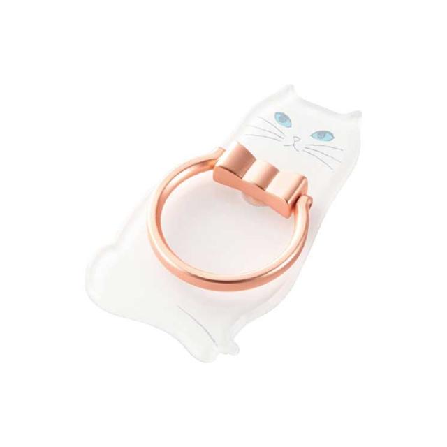 エレコム スマートフォン用ストラップフィンガーリング アニマル 白ネコ P-STRAMCATW