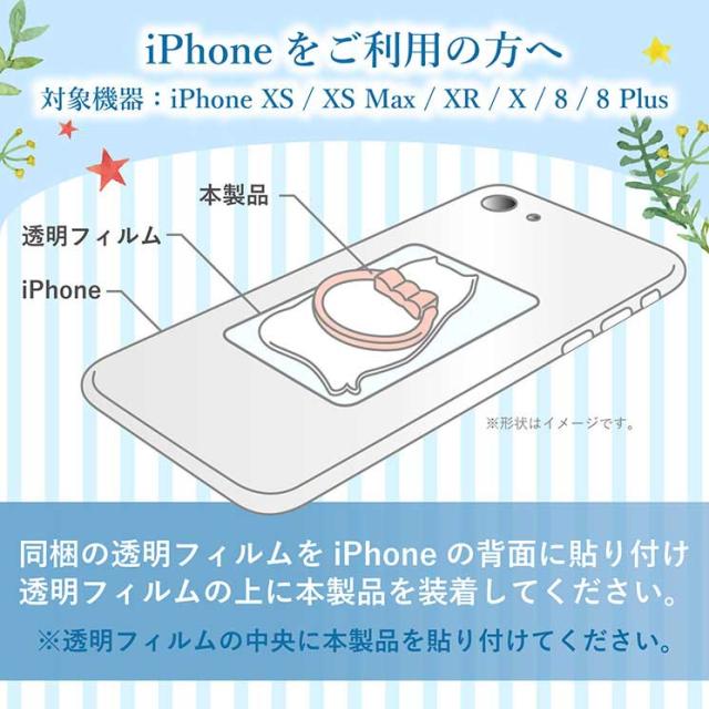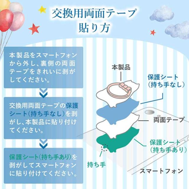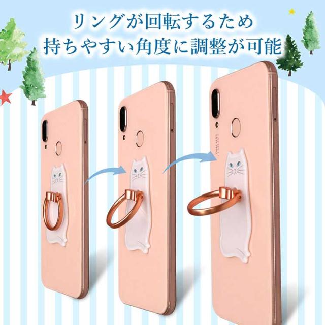 ■背面に貼りつけてスマートフォンの落下を防ぐ、フィンガーリングです。■リング部分のリボンが蝶ネクタイのように見えるかわいいデザインです。■持ち方に合わせてリングが回転し、持ちやすい角度に調整可能です。■動画視聴時にリング部分がスタンドになる、便利なスタンド機能がついています。■当社試験をクリアした吸着シートにより、使用中にスマートフォンから剥がれるのを防止します。■長さ:収納時:約(W)36×(D)8.3×(H)63mm (リング部含む) ■セット内容:フィンガーリング×1、吸着強化フィルム×1、交換用両面テープ×2 ■材質:ポリカーボネート、亜鉛合金(吸着面:アクリル系粘着) ■カラー:白ネコ