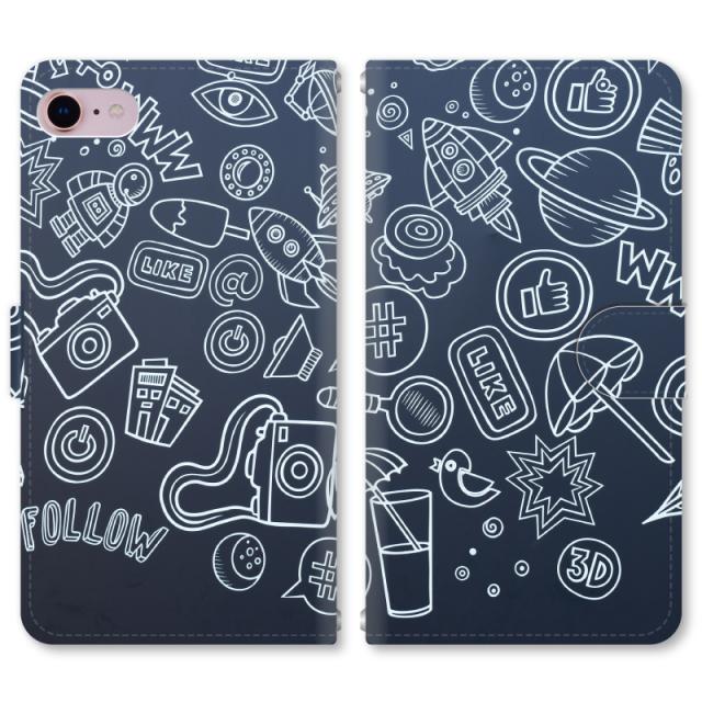 スマホケース 手帳型 iPhone13 iPhoneSE2 アイフォン 8 aquos sense GooglePixel xperia galaxyなど多機種制作対応 m3063_宇宙(手書き)