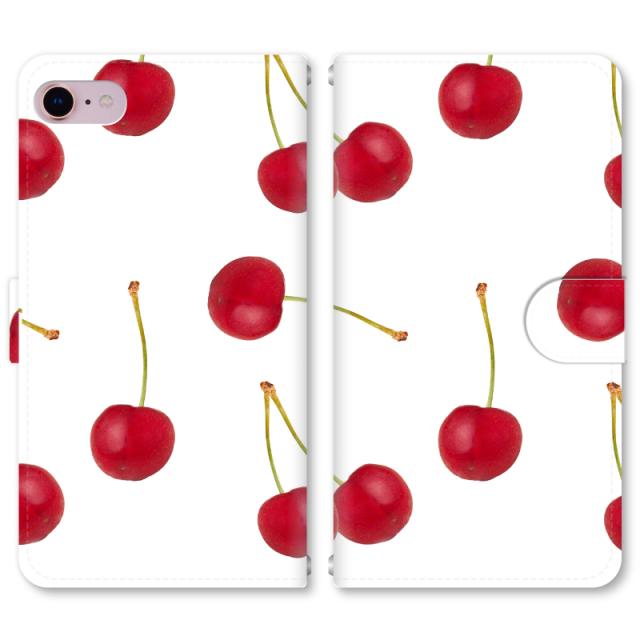 スマホケース 手帳型 iPhone13 iPhoneSE2 アイフォン 8 aquos sense GooglePixel xperia galaxyなど多機種制作対応 m3066_さくらんぼ