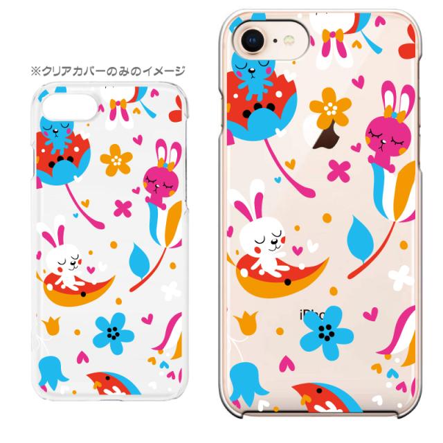 スマホハードケース iPhone13 iPhoneSE2 アイフォン 8 aquos sense GooglePixel xperia galaxyなど多機種制作対応 c9111_うさぎとお花[透]