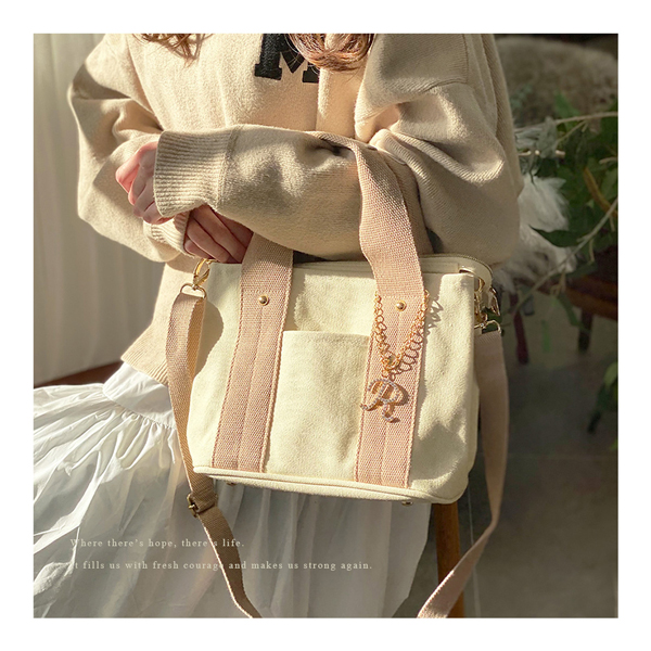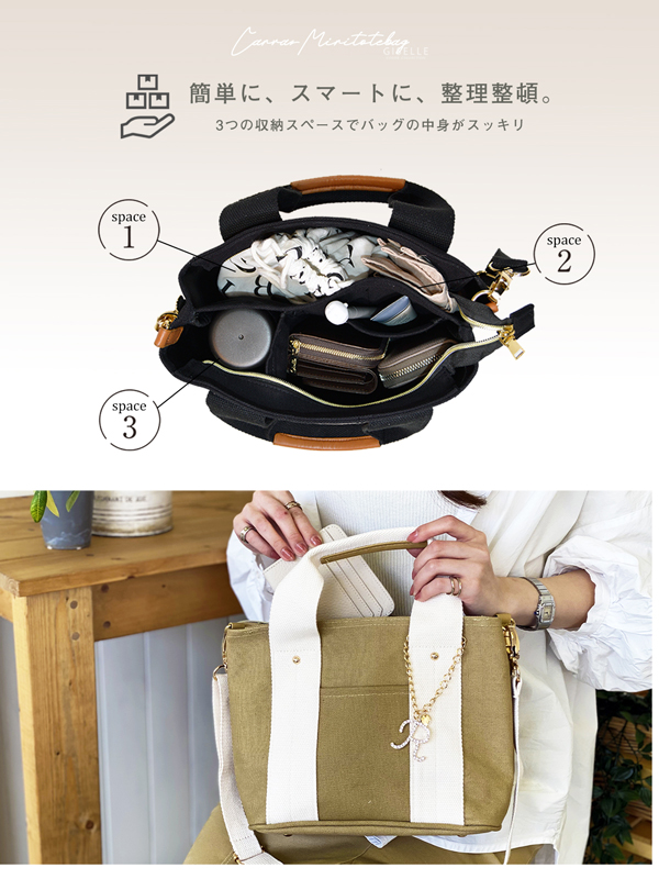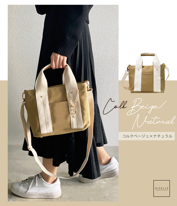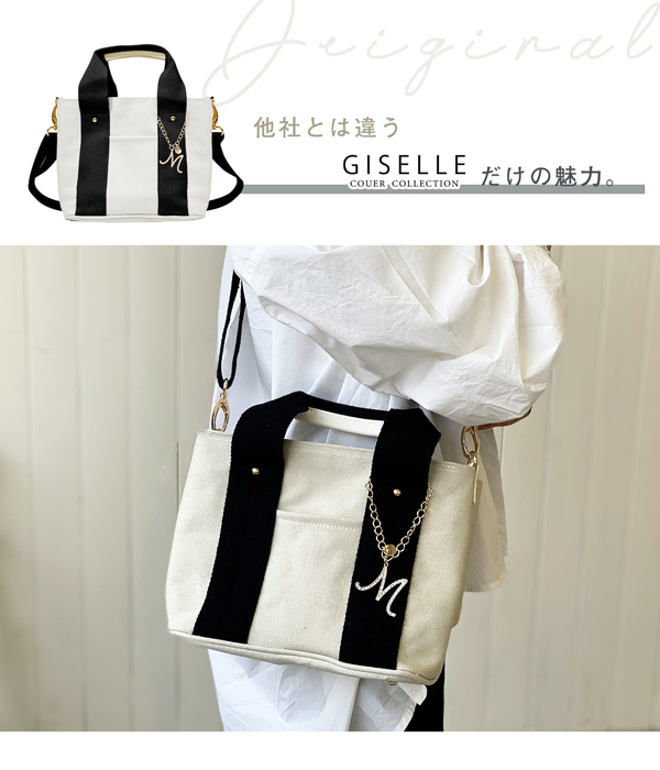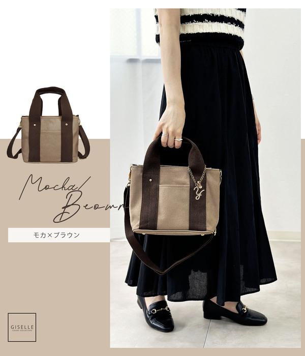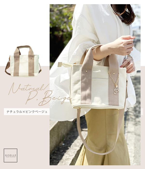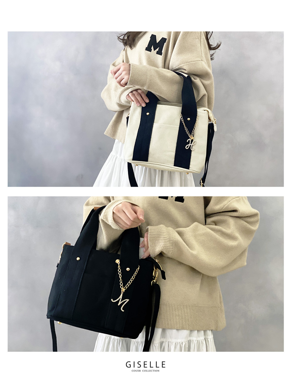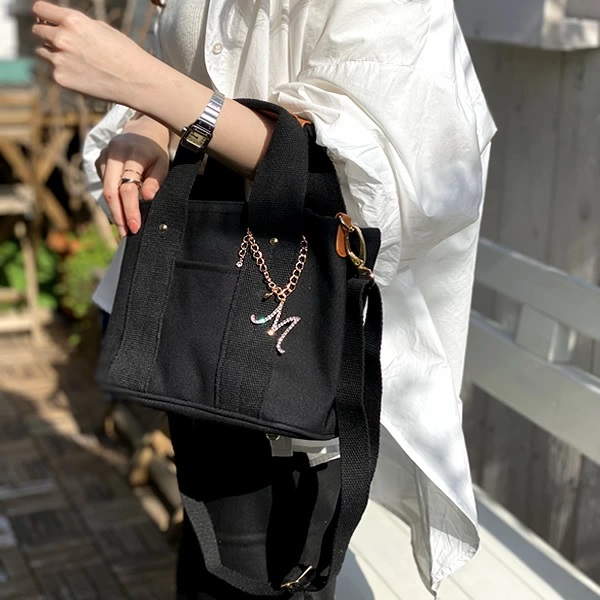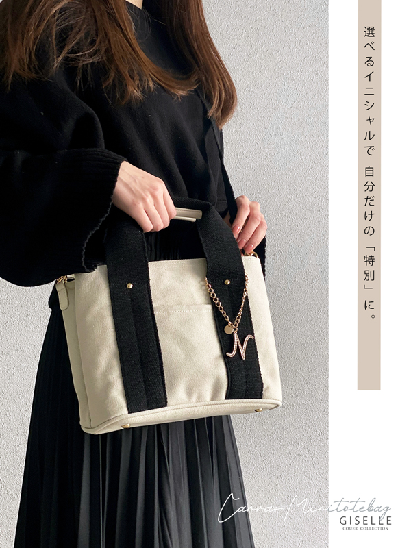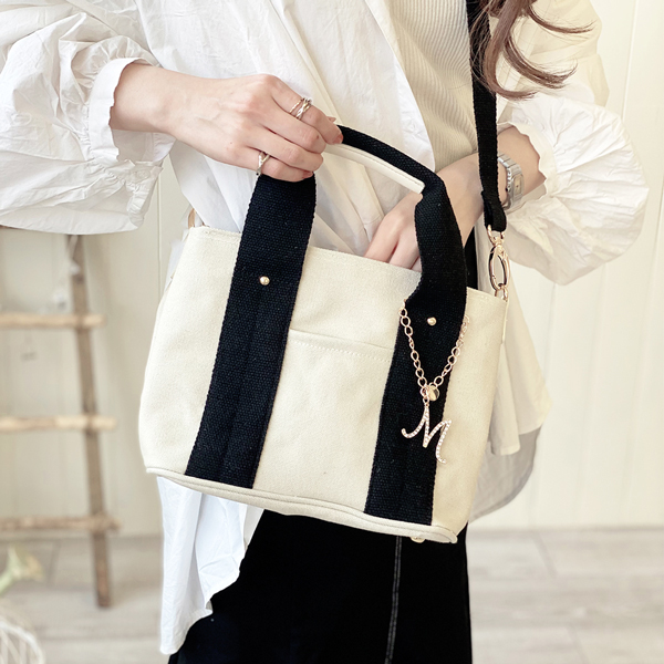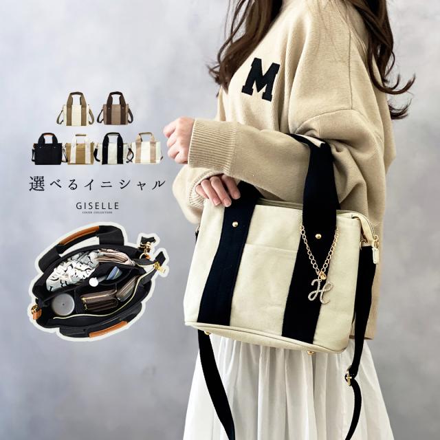 【選べるイニシャルチャーム付き】トートバッグ 2way 仕切り バッグ レディース 通勤 通学 ミニトートバッグ ショルダー ショルダーバッグ キャンバス イニシャル バッグチャーム 洗える 人気 トート 大容量 送料無料 プレゼント ギフト