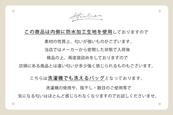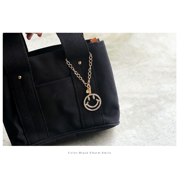 - さっそく使用してますが生地はしっかりしていて、チャームもかわいく、収納量があり使いやすいので別の色も注文しようと思いました。