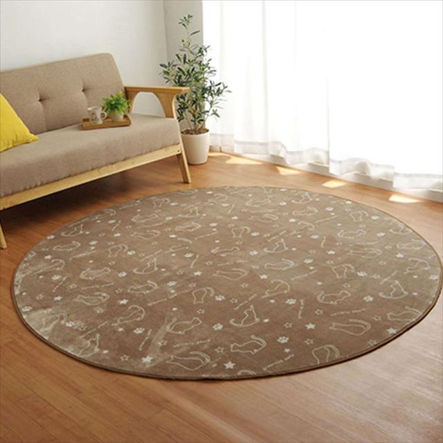 代引不可 ラグ カーペット ねこ キャット カーペット ブラウン 円形 丸 ラウンド 約185cm丸 ホットカーペット対応 洗える 洗濯可 猫柄 ねこ柄 ネコ柄 CAT アニマル IKEHIKO 9845021