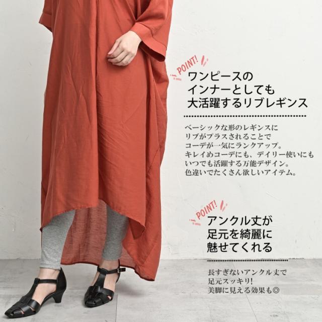 【メール便送料無料】長すぎないアンクル丈が足元を綺麗に魅せてくれるリブレギンス。
