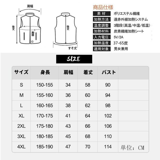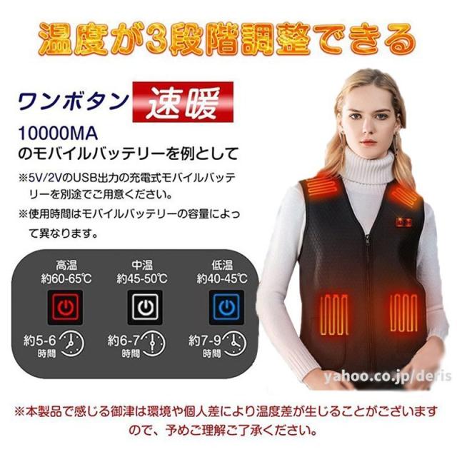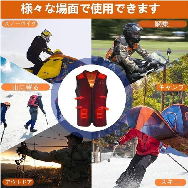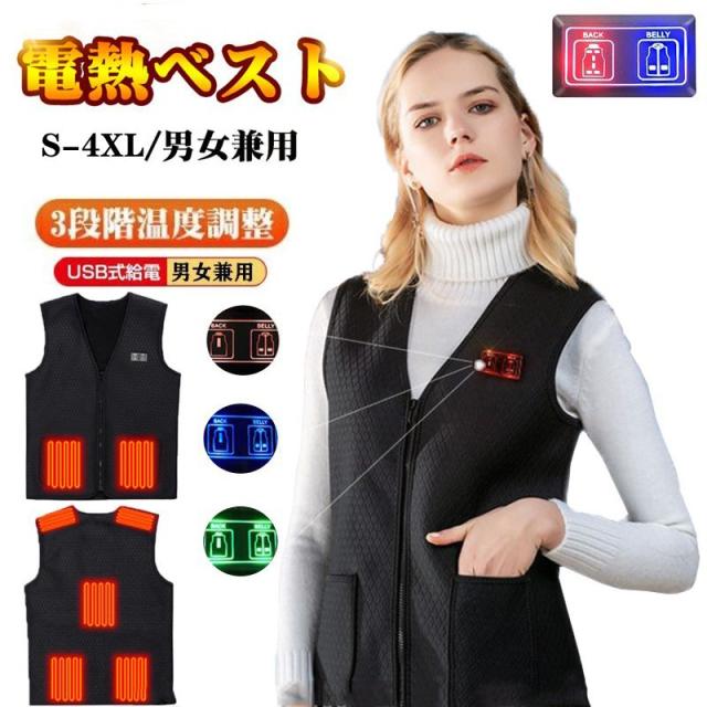 電熱ベスト ヒーターベスト USB式給電 7つヒーター ダブルスイッチ 前後独立温度設定可能 3段温度調整 通勤 防寒対策 洗える 男女兼用 送料無料