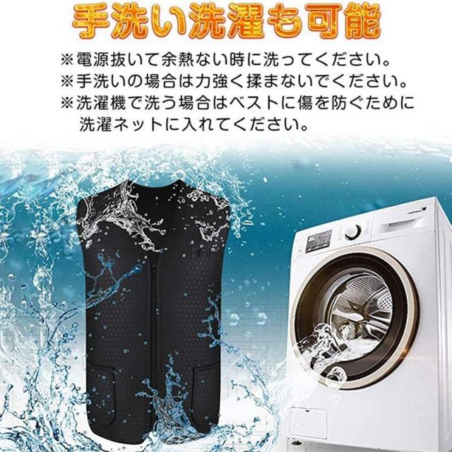 電熱ベストのバッテリーを取り出して、余熱がない状況で手で洗えます。強力に揉んでただいては行けません。自然乾かした後、使用することができます。清潔簡単でいつでも綺麗に保ちます。※手洗い限定。洗濯機不可、加熱電路を損害する可能性が高いです