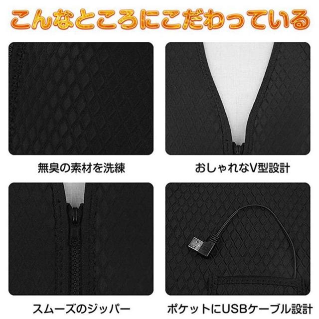 - ちゃんと暖かくなっていて、この冬とても使えそうです。 生地も想像よりしっかりしていて良かったです。 USBケーブルはポケットの中にあり、便利です。 電熱箇所もどこにあるか一見わからないくらい馴染んでいて良かったです。