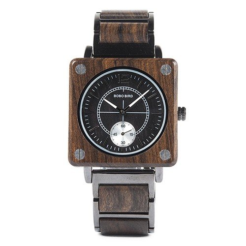 marque de luxe BOBO BIRD木製メンズスクエアウォッチ高級クォーツパーソナライズウッド 43mm Black