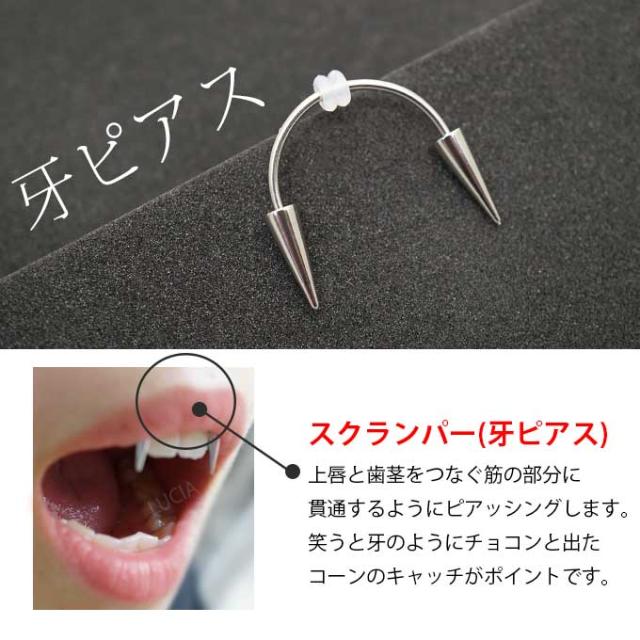 本日P2倍 16G ピアス ボディピアス 牙ピアス スクランパー コの字型 牙 歯 定番 サーフェイスバーベル 変形バーベル 金属アレルギー対応 316L 高品質