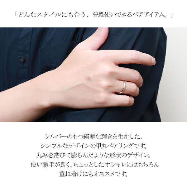 シルバーのもつ綺麗な輝きを生かした、シンプルなデザインの甲丸ペアリングです。