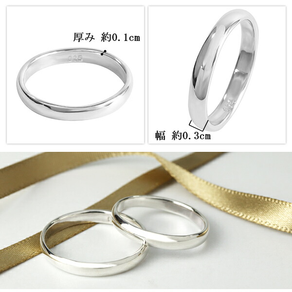 プレーン シルバー ペアリング 幅3mm 甲丸 細身 3〜25号 メッセージ刻印 名入れ可