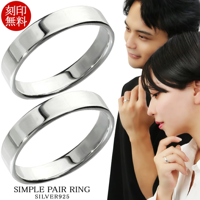 刻印 無料 シンプル シルバー 925 ペアリング 幅3mm 平打ち 3〜29号 カップル 2個セット 指輪 ペア シルバーリング 大きいサイズ お揃い メンズ
