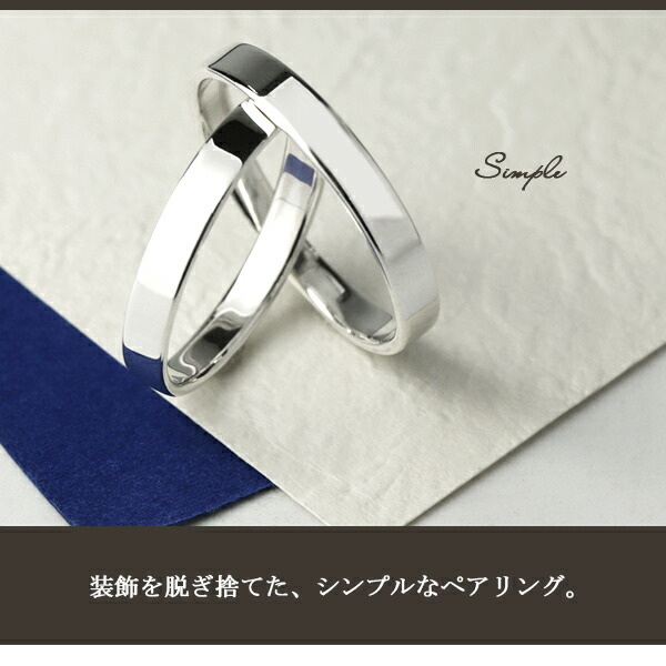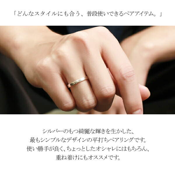 シルバーのもつ綺麗な輝きを生かした、最もシンプルなデザインの平打ちペアリングです。