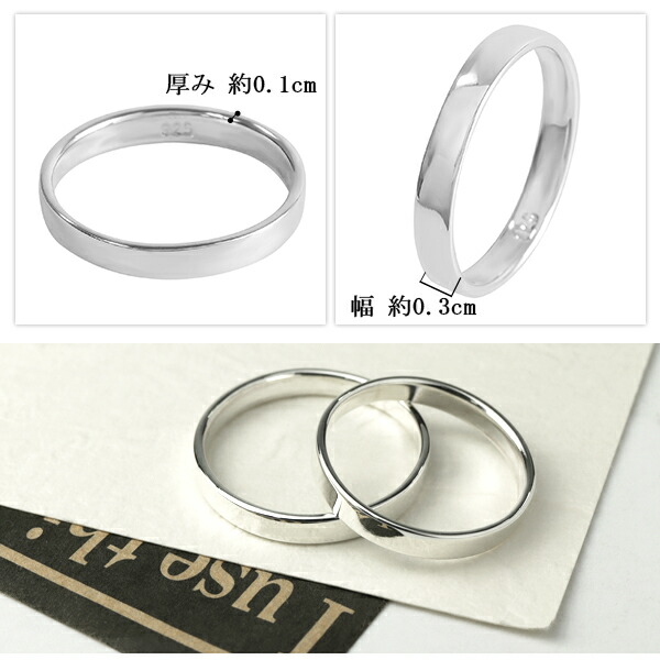 プレーン シルバー ペアリング 幅3mm 平打ち 3〜29号 メッセージ刻印 名入れ可