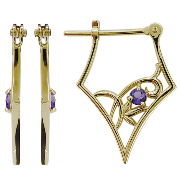 ピアス レディース 18金 フープ アメジスト クロッシングピアス アラベスクデザイン