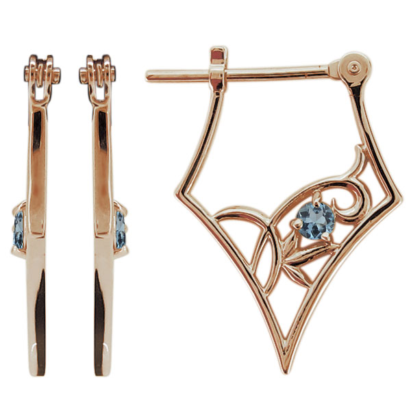 3月誕生石アクアマリンサンタマリアを使用した10金製の、唐草(アラベスク)モチーフクロッシングピアスです。