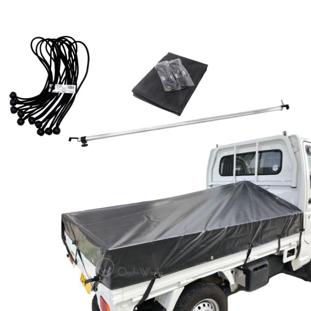 バンジーコード 10本付 トラックシート 伸縮式荷台ポールセット スロープ型 ブラック 軽トラ用 標準荷台軽トラック用 エステル帆布