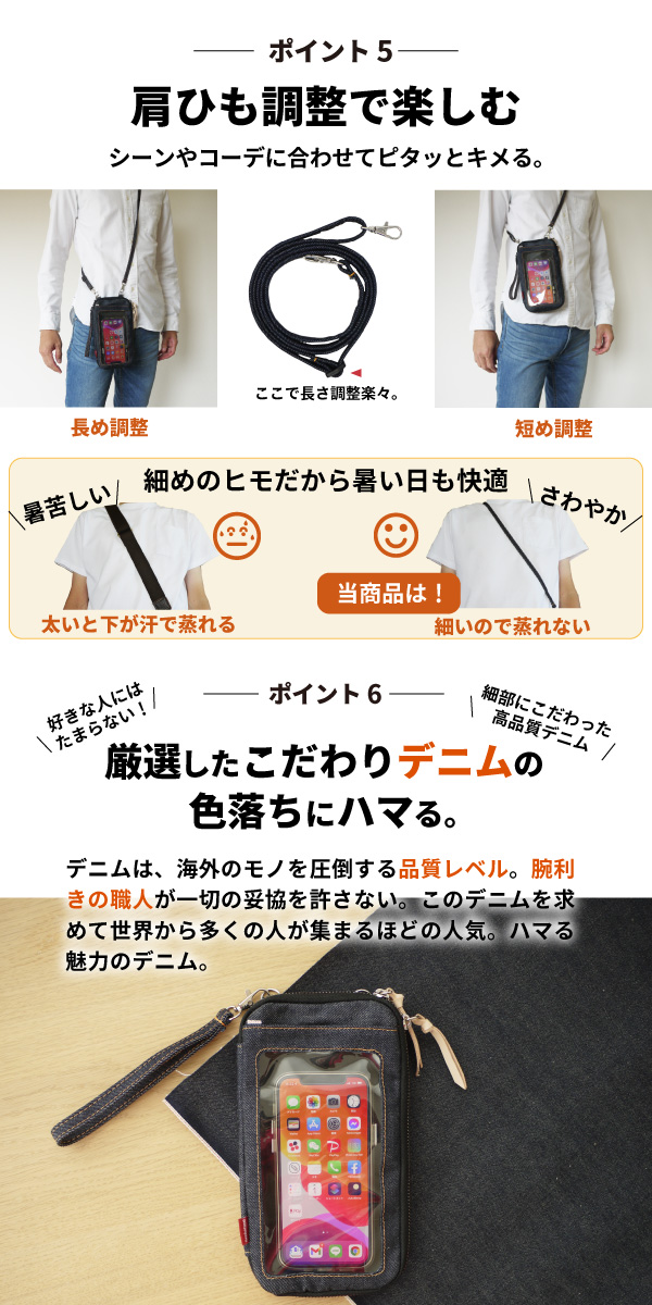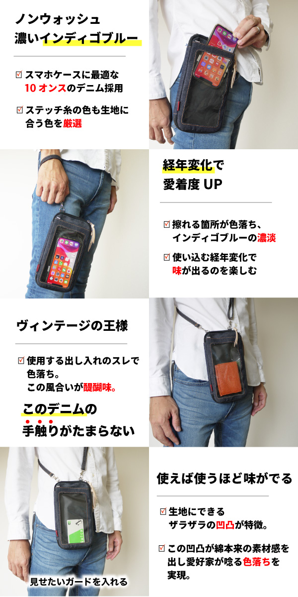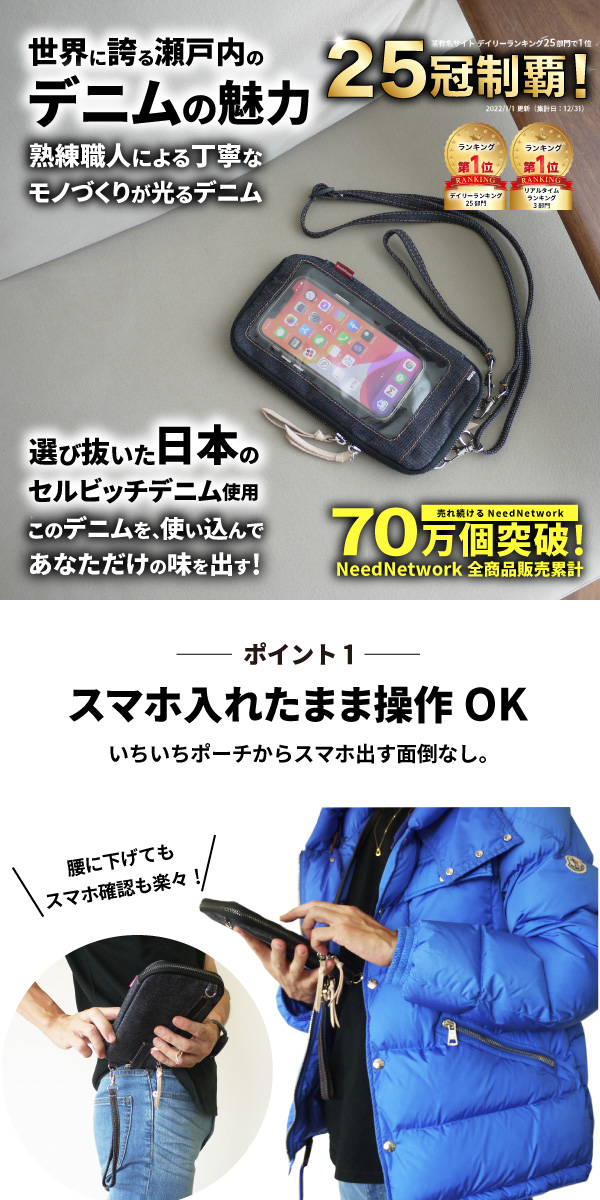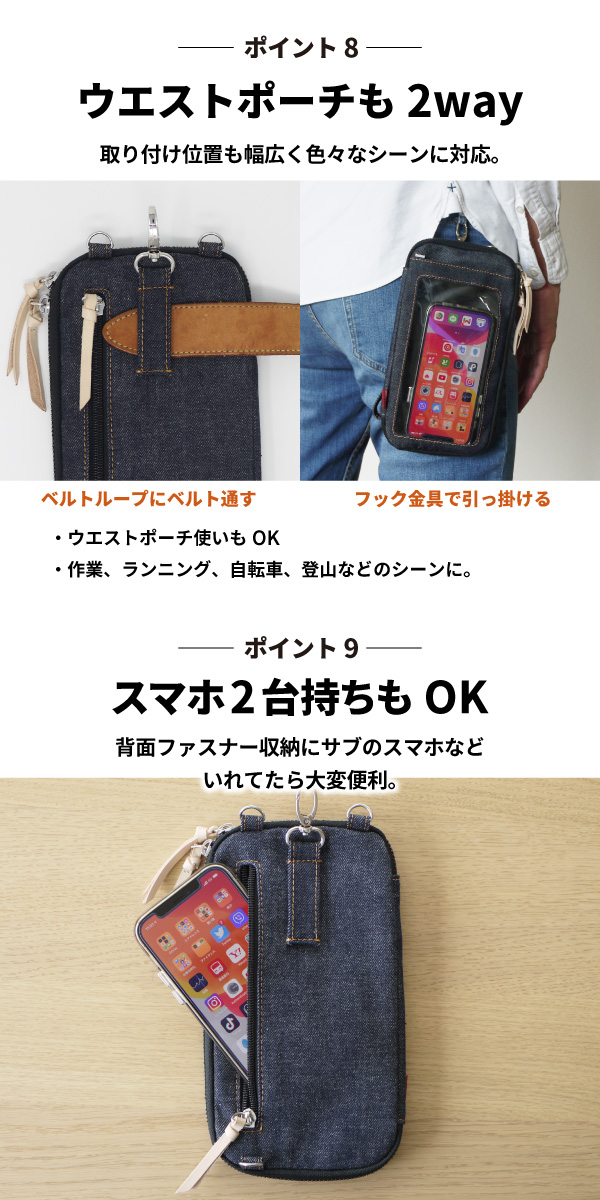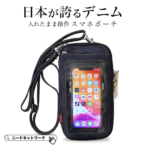 スマホポーチ 入れたまま操作 日本が誇るデニム ショルダーバッグ ウエストポーチ ボディバッグ ポシェット RFID スキミング防止 ベルトポーチ