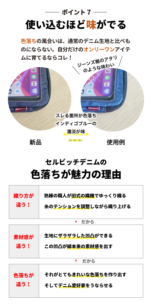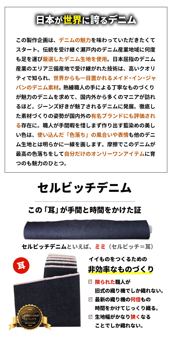 ■ポイント6、世界でも名高い日本製デニムから厳選したデニム生地を使用