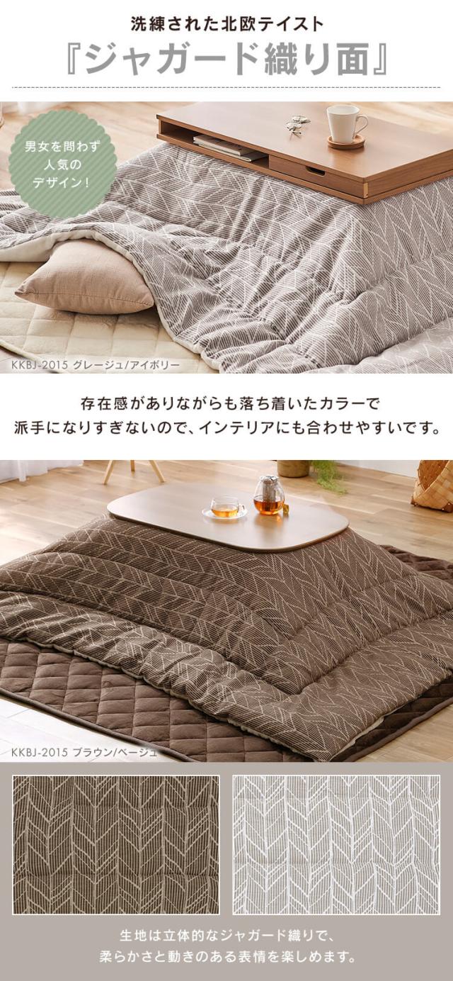 北欧テイストのジャガードデザインとインテリアに合わせやすい落ち着いたカラー。