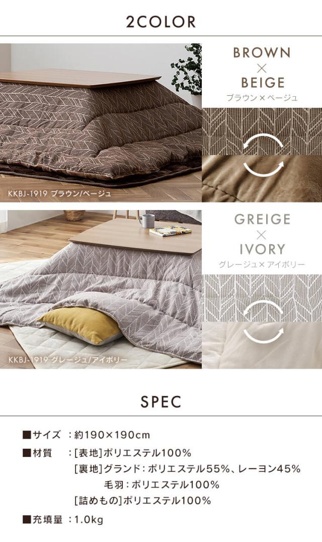 こたつ こたつ布団 こたつ掛布団 正方形 190cm×190cm KKBJ-1919 こたつ 掛布団 正方形 コタツ 炬燵 布団 ふとん あったか 暖かい シンプル アイリスオーヤマ 送料無料