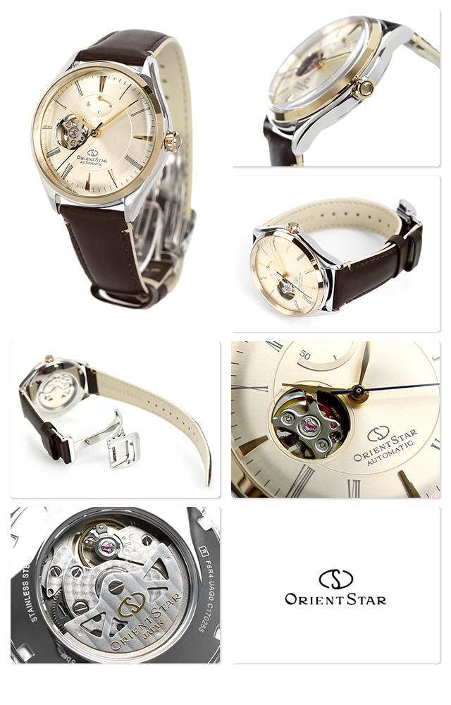 12月下旬入荷予定予約受付中 正規品 7年保証キャンペーン 送料無料 オリエントスター クラシック セミスケルトン 草木にそそぐひかり 日本製 自動巻き メンズ 腕時計 RK-AT0201G ORIENT STAR Classic Semi Skeleton アナログ シャンパンゴールド×ブラウン 革ベルト ◆「やさしいひかり」をデザインコンセプトにしたモデルが登場。変わらない日常や自然の景色から感じる穏やかな幸福感を、ナチュラルで淡いトーンのカラーダイアルで表現しました。文字盤の中央部分と9時位置のセミスケルトン部分にはダイヤカットを施し、大小のひかりの輪の重なりを表現。また、やわらかな曲線を描くボックスガラスやボンベ文字盤を組み合わせることで、クラシカルな印象を与えるデザインに。ベルトには横から見た時にも表面・裏面両方の素材が見える、フランス仕立てのベルトを採用し、クラシカルなデザインを引き立てる、雰囲気のある仕上がりを実現。台形形状により操作性を高めたりゅうずにはラインストーンをセットし、側面から見た時にもエレガントな表情を演出します。 発売日:21年9月発売 機械式腕時計 Made in Japan