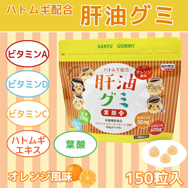 肝油グミ 葉酸プラス ドロップ オレンジ風味 150粒 | ハトムギ 肝油ドロップ 和漢 国産 子供 目 サプリ ビタミンc ビタミン 受験生 ビタミン剤 栄養補助食品 グミサプリ ビタミングミ 敬老の日 健康食品 敬老の日ギフト ビタミンサプリ サプリメント 食事で不足 の日