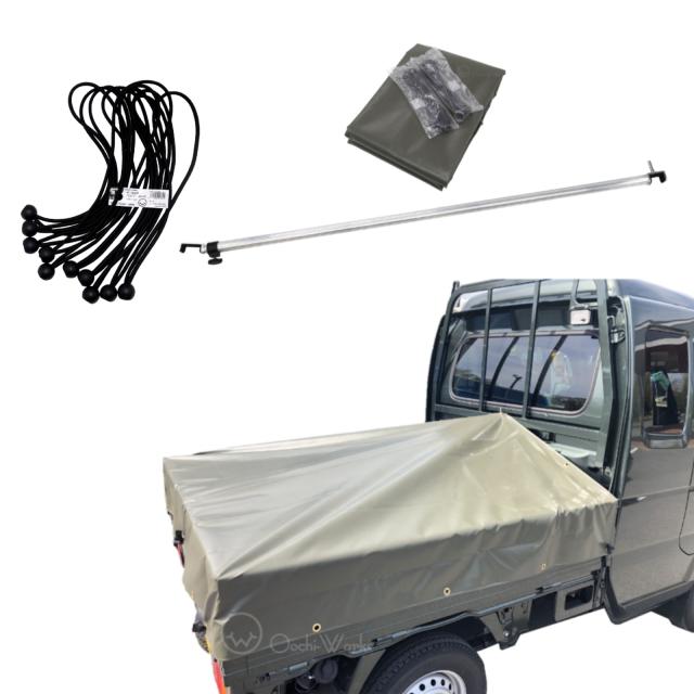 バンジーコード 10本付 トラックシート スーパーキャリイ用シート 伸縮式荷台ポールセット スロープ型 OD 国防色 エステル帆布