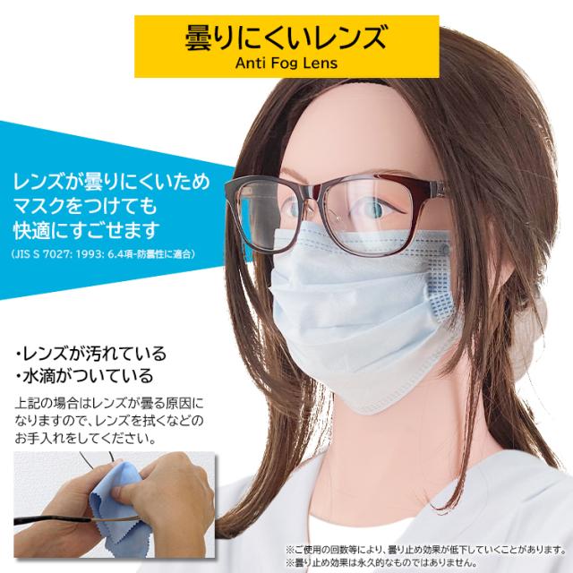 マスクをつけながらご着用いただいても曇りにくいレンズとなっています。
