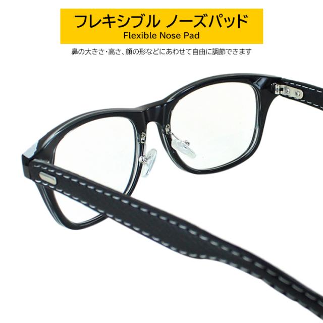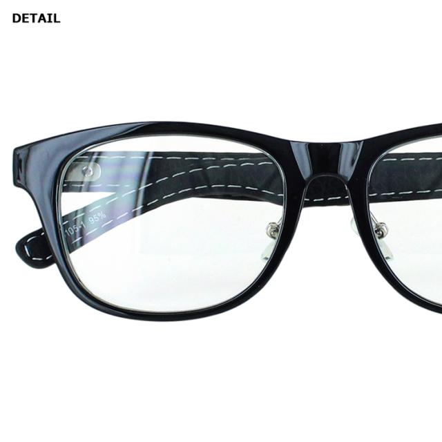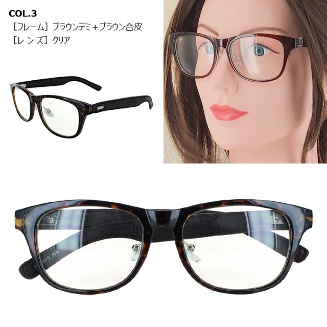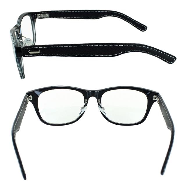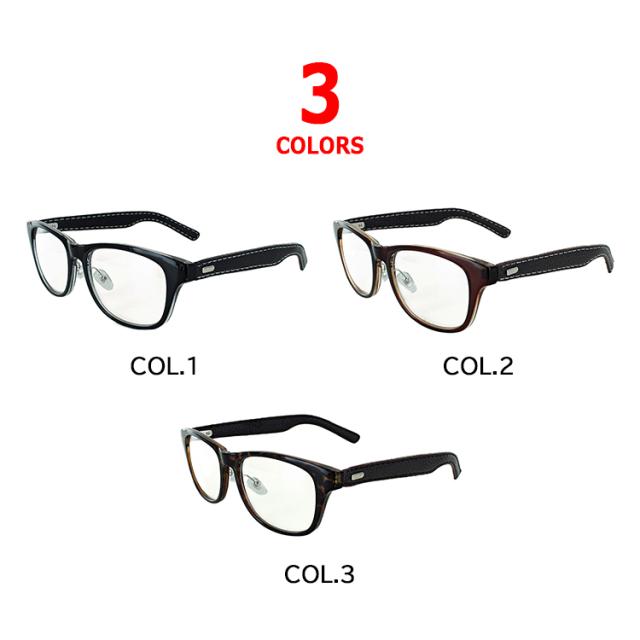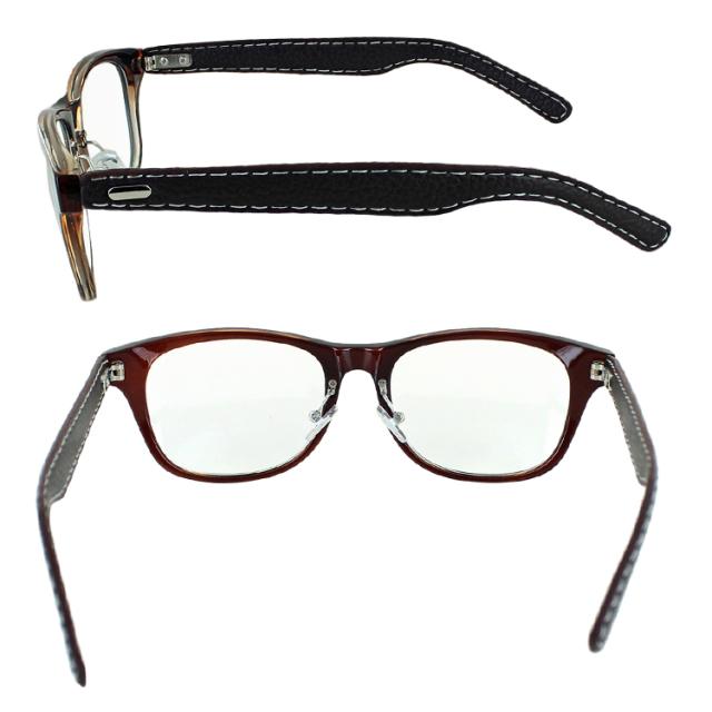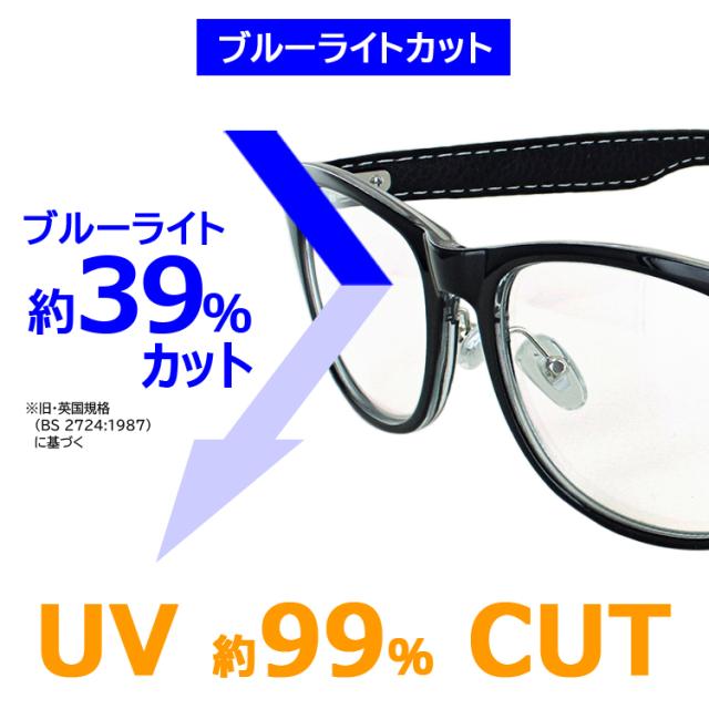| ●フレームカラー COL.1 フレームカラー:ブラック+ブラック(合皮) COL.2 フレームカラー:ブラウン+ブラウン(合皮) COL.3 フレームカラー:ブラウンデミ+ブラウン(合皮) ●レンズカラー(全色共通) クリア | ●素材 レンズ素材:プラスチック レンズ枠素材:プラスチック(塗装) テンプル素材:合成皮革巻き ●仕様 UV99% カット ブルーライト39%カット フレキシブルノーズパッド ●可視光線透過率 95% |