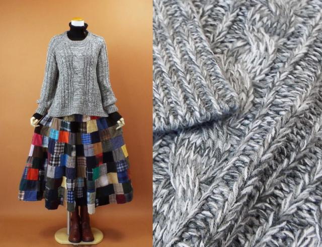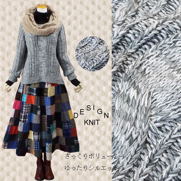 ニット トップス ケーブル編み チュニック 長袖 大人 秋冬 ゆったり 583g