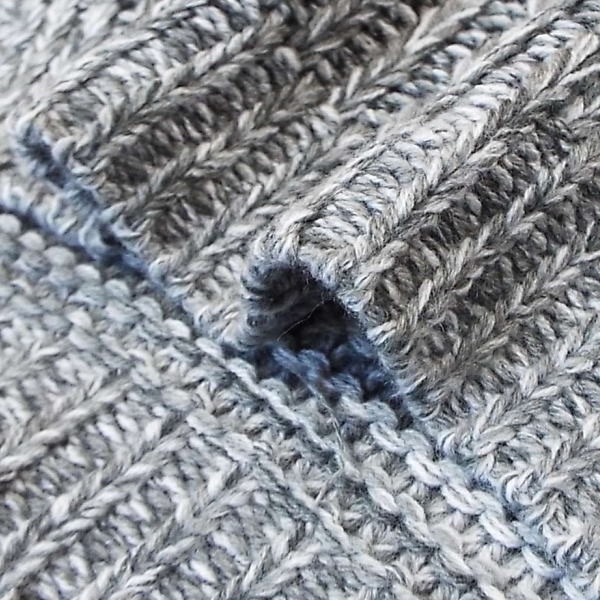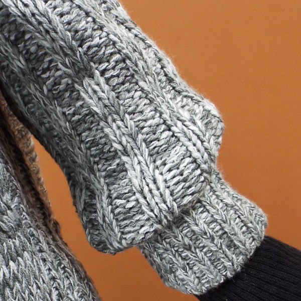 前身頃のケーブル編みが1枚でサマ見えするセーター