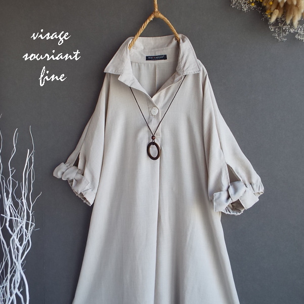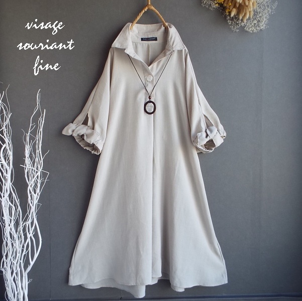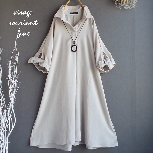ワンピース レディース ゆったり フレアー ロング Aライン スキッパー シャツ 春 40代 50代 s2845