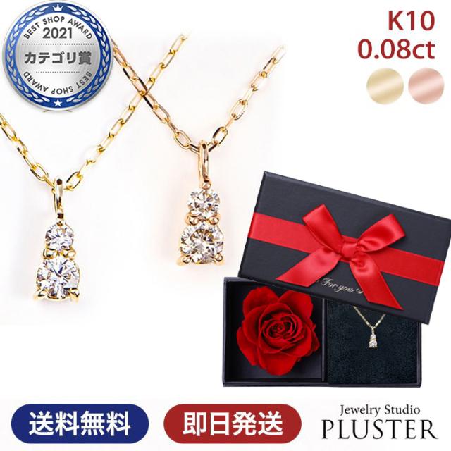 ネックレス レディース ダイヤモンドネックレス ダイヤモンド ライン ダイヤネックレス ダイヤ 10金 K10 10K YG PG ゴールド イエロー ピンク スキンジュエリー 華奢 ペンダント 金属アレルギー 彼女 ギフト 誕生日 限定ケース付 プレゼント 女性 アクセサリー 母の日