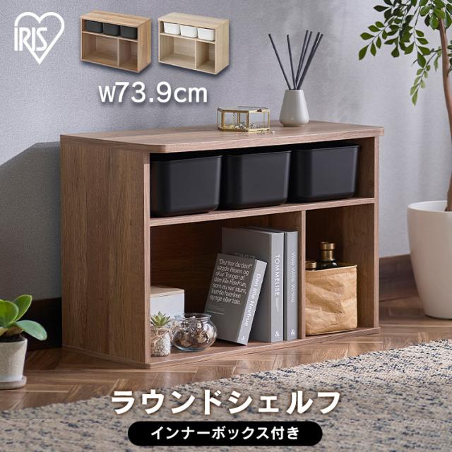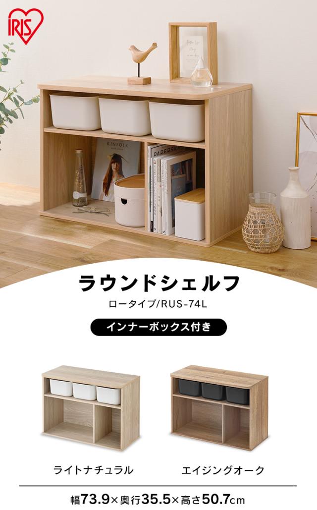 絵本棚 収納棚 ラウンドシェルフ ロータイプ RUS-74L ライトナチュラル エイジングオーク シェルフ 棚 収納 ロータイプ 子供 こども シンプル リビング おもちゃ 玩具 絵本 えほん アイリスオーヤマ 送料無料