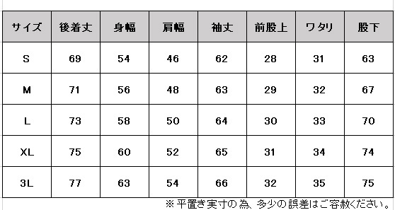 サイズ:身長 / チェスト / ウエスト
