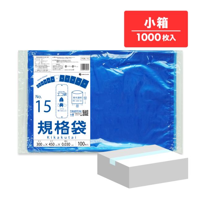 【小箱販売】FCBL-15kobako 規格袋 15号 0.030mm厚 青半透明 100枚x10冊 食品衛生法 RoHS指定