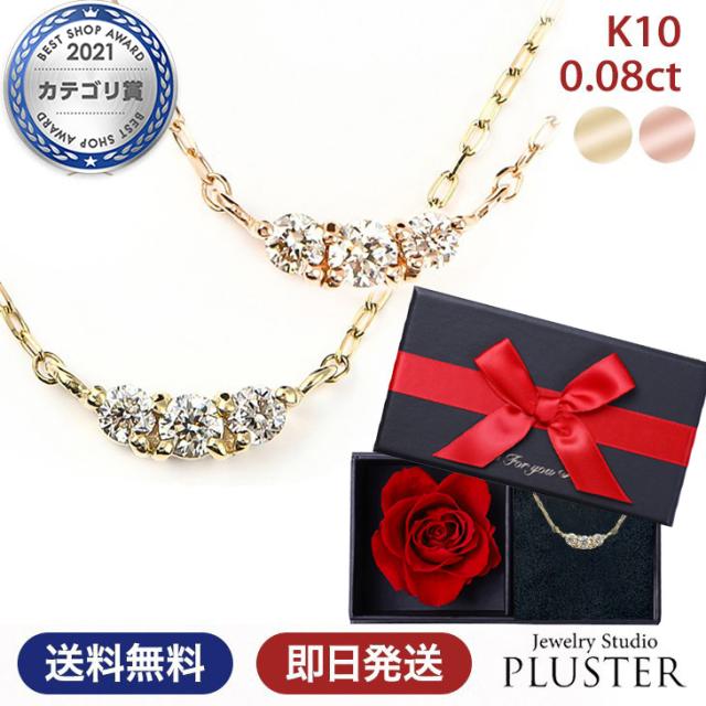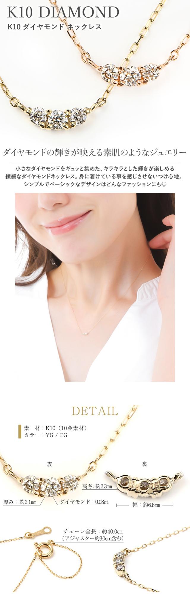ネックレス レディース ダイヤモンドネックレス ダイヤモンドライン ダイヤネックレス ダイヤ 10金 K10 10K YG PG ゴールド イエロー ピンク スキンジュエリー 華奢 ペンダント 金属アレルギー 彼女 ギフト 誕生日 限定ケース付 プレゼント 女性 アクセサリー 母の日