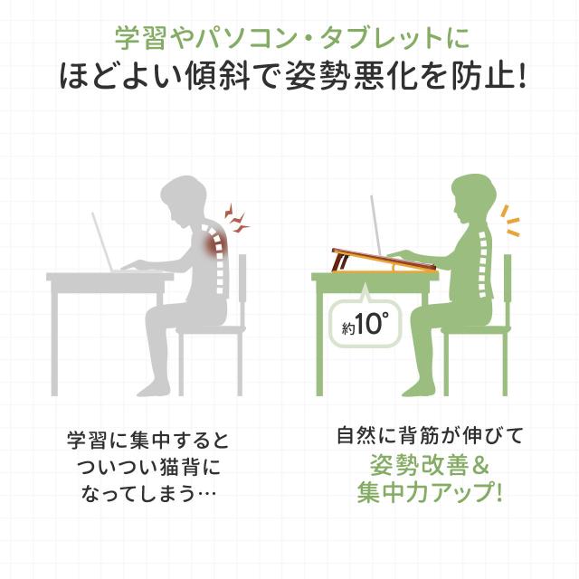 ⇒ご購入の前にご確認下さい約10度の傾斜によって、正しい姿勢を維持しながら勉強できる。タブレット用のタッチペンや筆記用具を置けるペントレー付き学習台。【WEB限定商品】