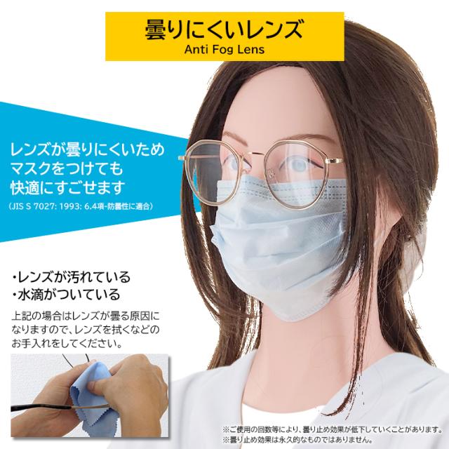 マスクをつけながらご着用いただいても曇りにくいレンズとなっています。